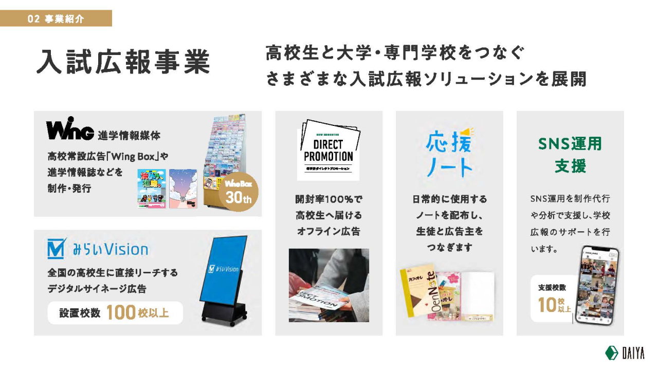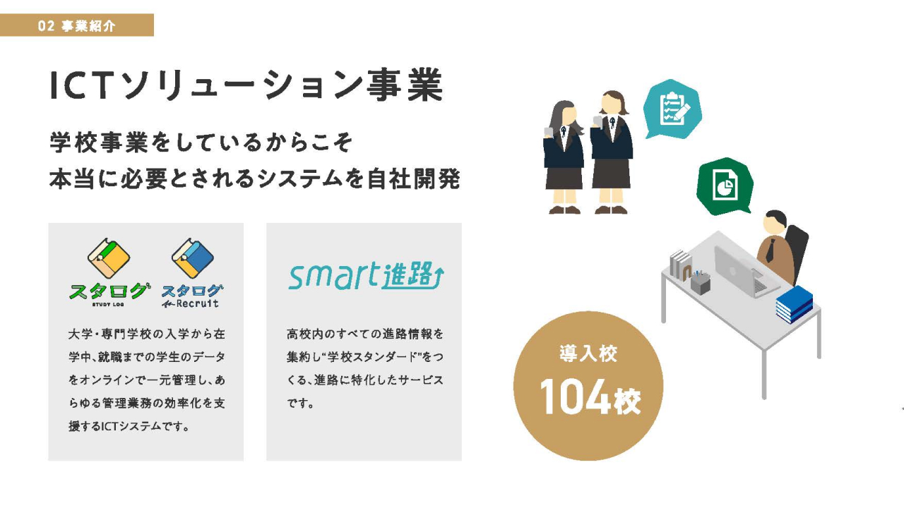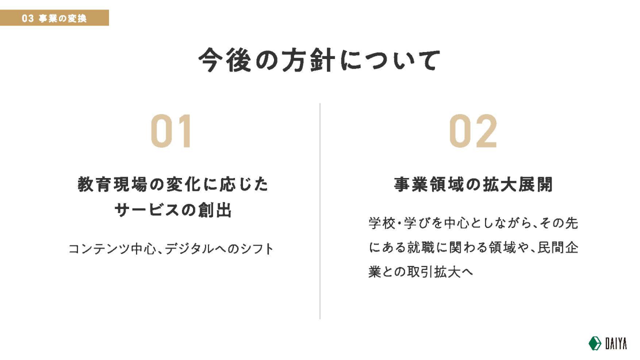 学校や学びを中心に、教育現場の変化に合わせたサービスを展開していきます。コンテンツの充実やデジタル化を進めるとともに、将来的には就職支援や民間企業との取引拡大も視野に入れています。