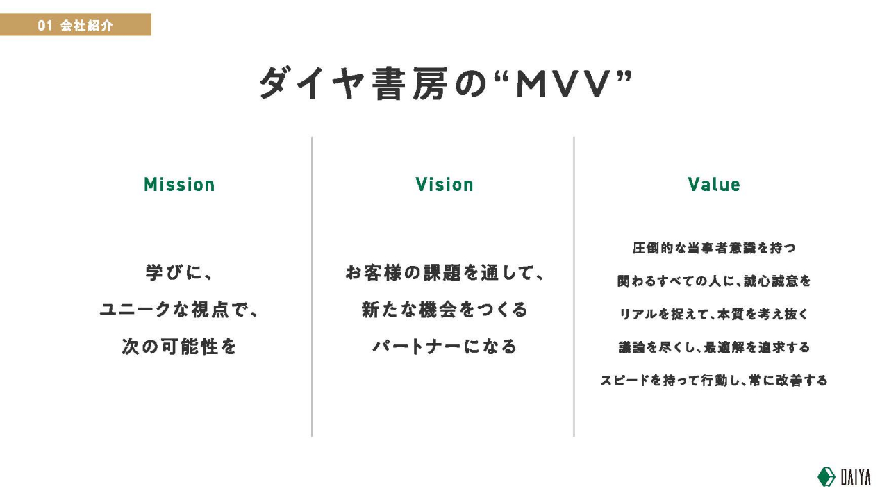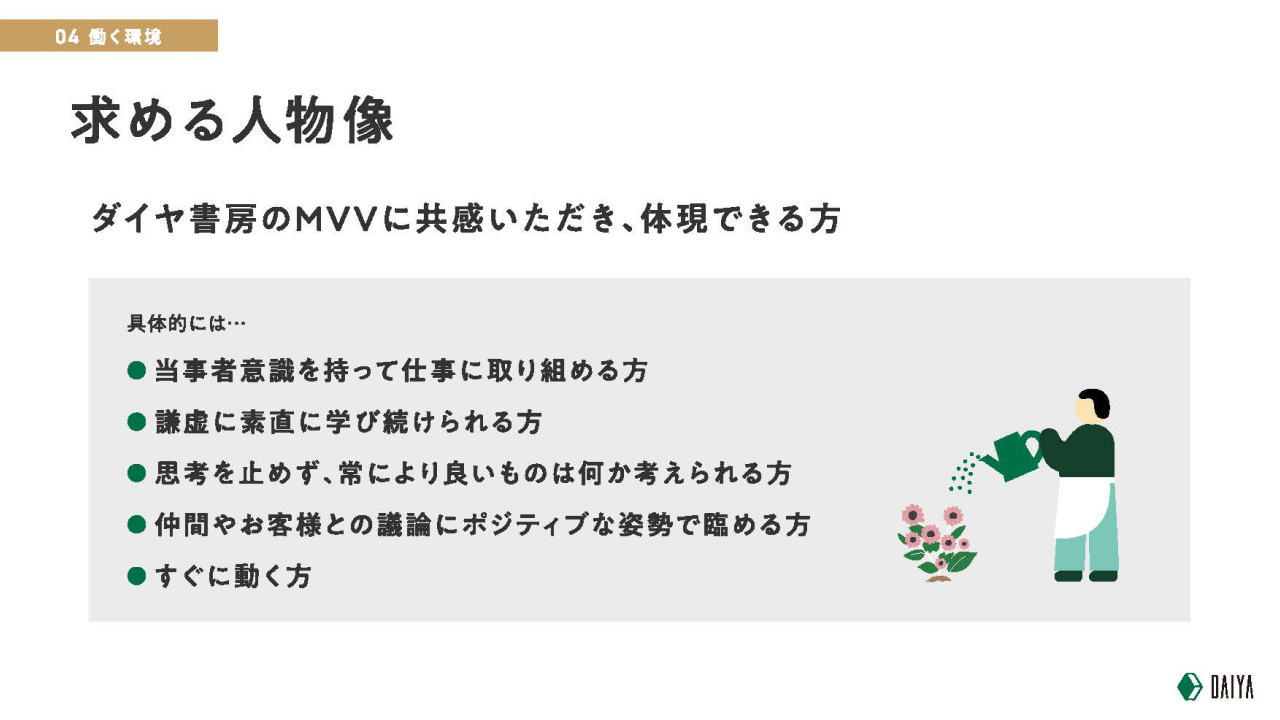 A. ダイヤ書房のMVV(ミッション・ビジョン・バリュー)に共感いただき、それを体現していただきたいです。